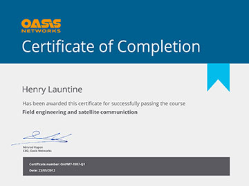 As satellite experts with vast experience and members of the Global VSAT Forum, Oasis is certified by GVF to examine technicians who want to qualify as VSAT installers.